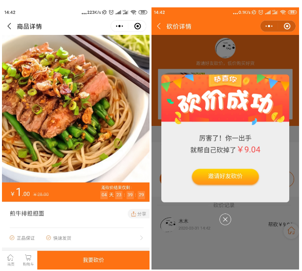 小程序+砍价的模式,可以帮助商家增加商品销售,减少商品库存积压