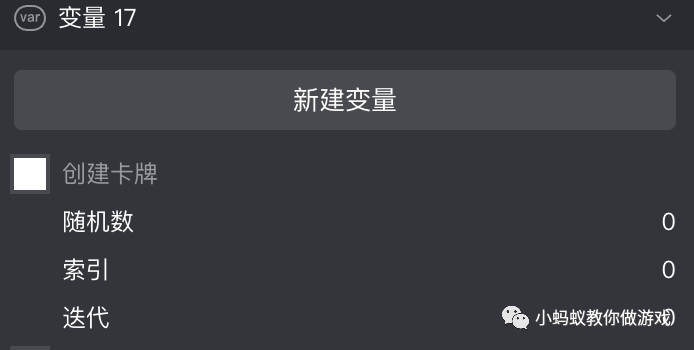 在“创建卡牌”精灵上,我们再创建三个局部变量。