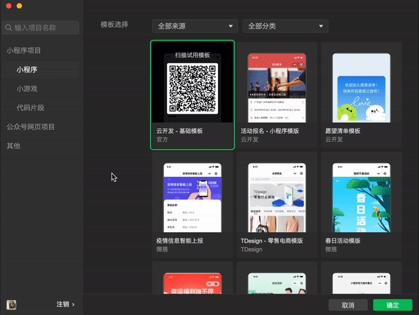 现在微信开发者工具已上线多款模板,覆盖电商、招聘、官网、调研等多个应用场景,助力开发者一键创建、多次复用,开发从此更简单!