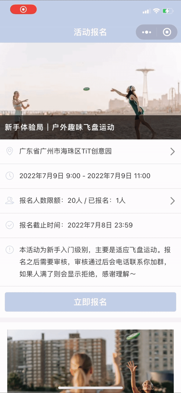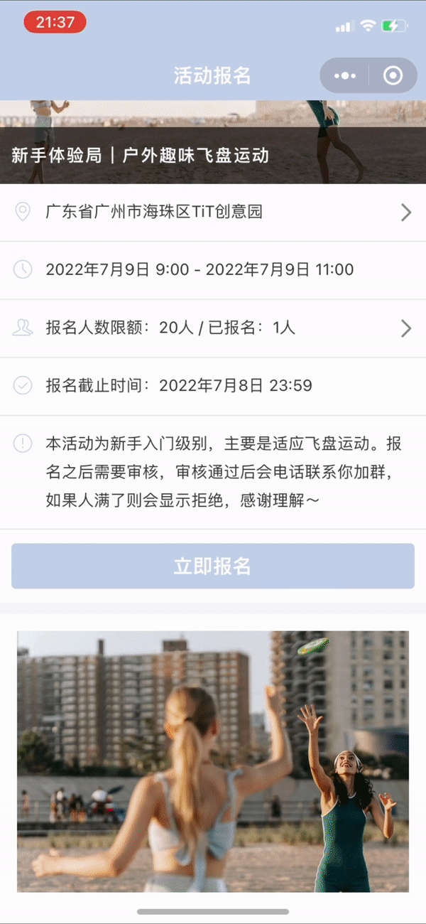 活动报名模板应用腾讯地图插件,便于用户快速了解活动地点,使用便利性蹭蹭蹭提升!