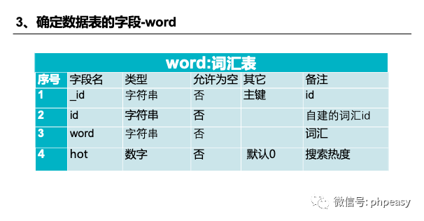 第二个功能,展示搜索的热词,那么我们就需要提前存储词汇的信息,所以需要建立一个词汇表;
