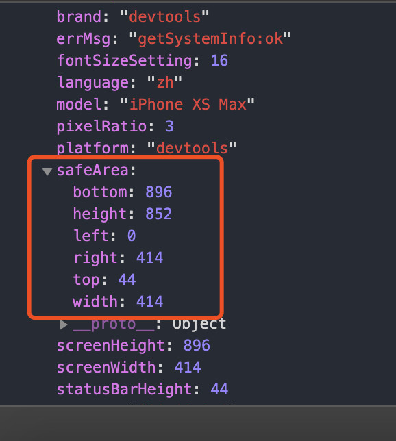 下图是模拟器上获取iPhone XS Max 的系统信息,对其中的safeArea有点不解。