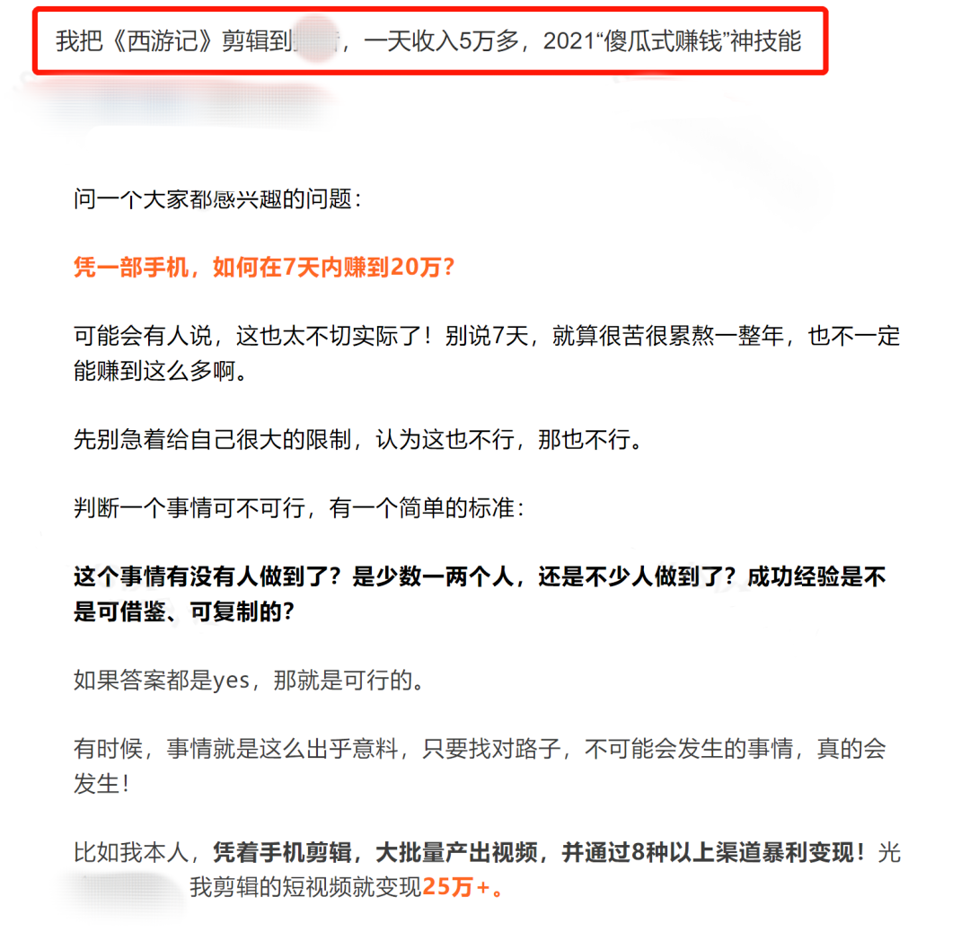 ②以不相关或夸张的案例突出兼职课程可以获得巨额收益。