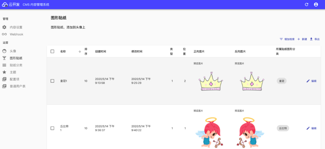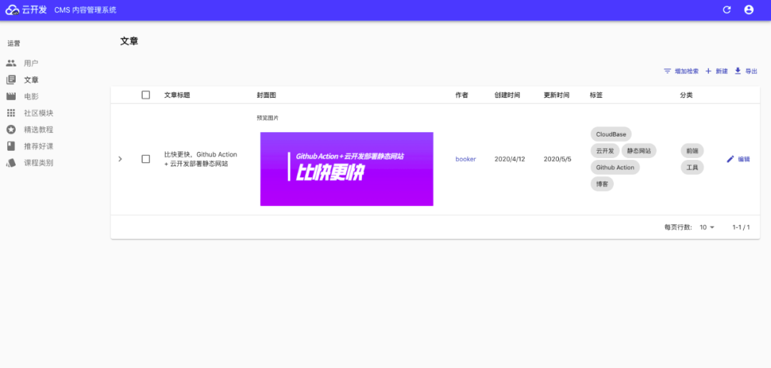 借助与云开发 CMS 自带的一些功能,我做了一些简单的配置,就完成了一个丰富的后台功能配置。