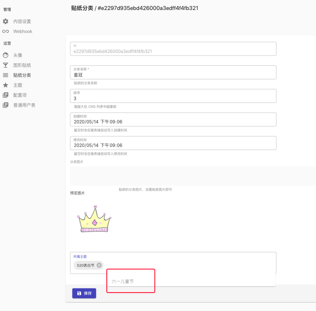 此外,除了常见的几种类型外,cms还支持富文本、markdown等高级格式,以及关联类型,也就是将一个字段与另外的一个表继续关联。举个例子来说,贴纸分类属于多个主题,贴纸属于多个贴纸分类,在这样的情况下,就可以借助于关联类型来快速管理了,十分方便。