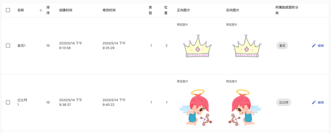 贴纸:贴在人脸上或头像内,位置类型分为额头、嘴巴、其他,头像内可以允许多个