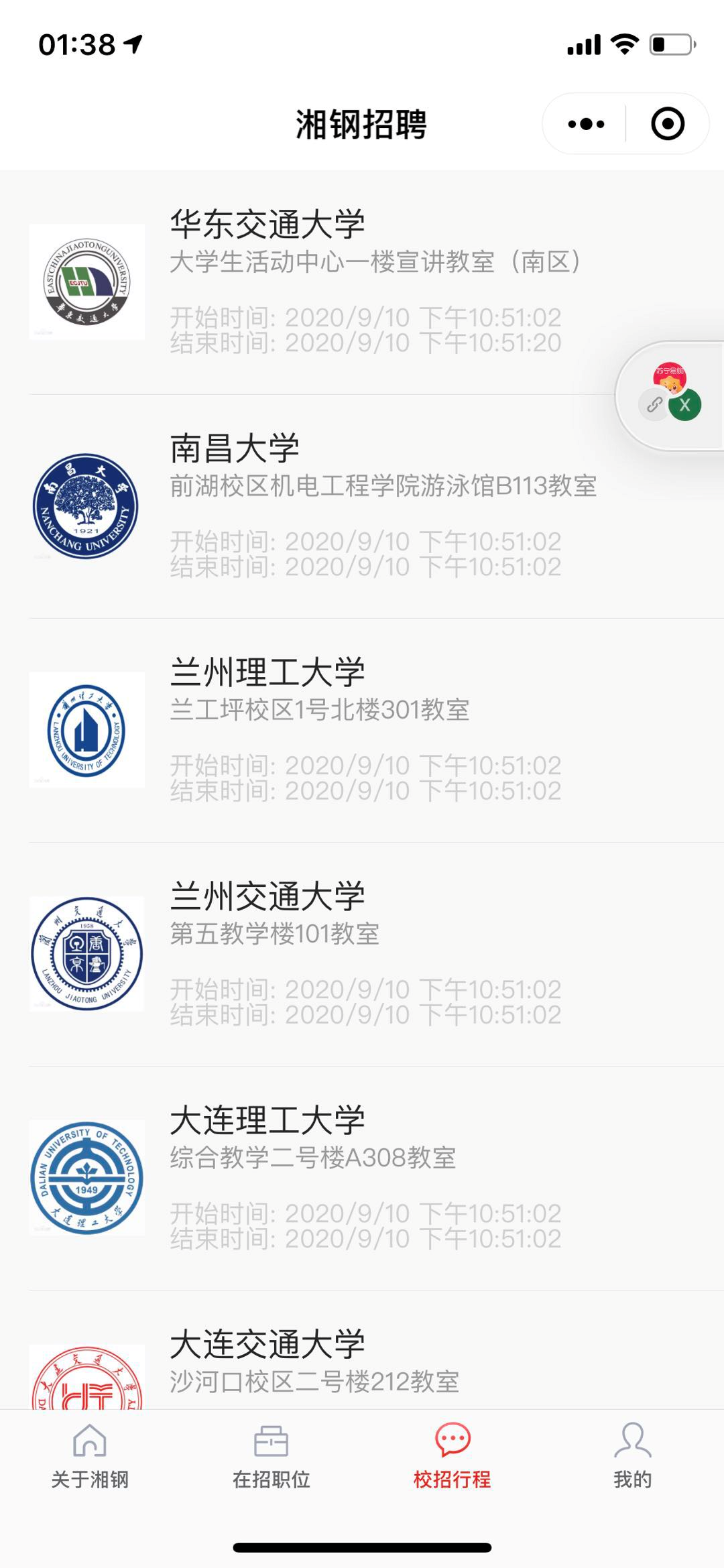 该页面主要展示校园招聘的行程,包括地点,时间等信息