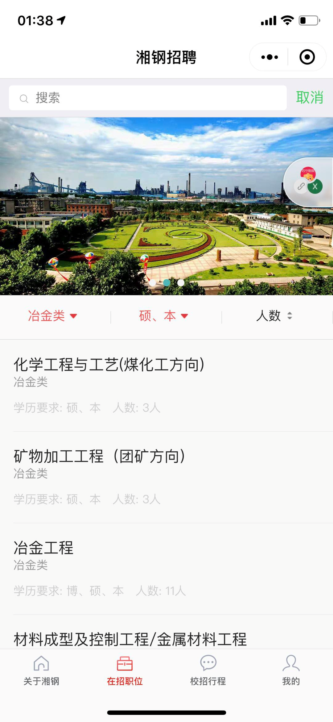 本页面主要包括搜索,筛选职位的功能,点击单个职位能够显示招聘的详细信息,并进行投递