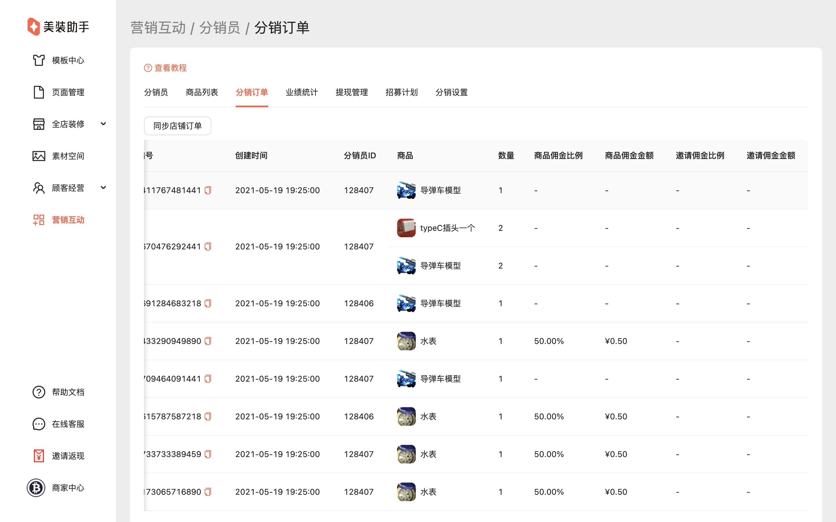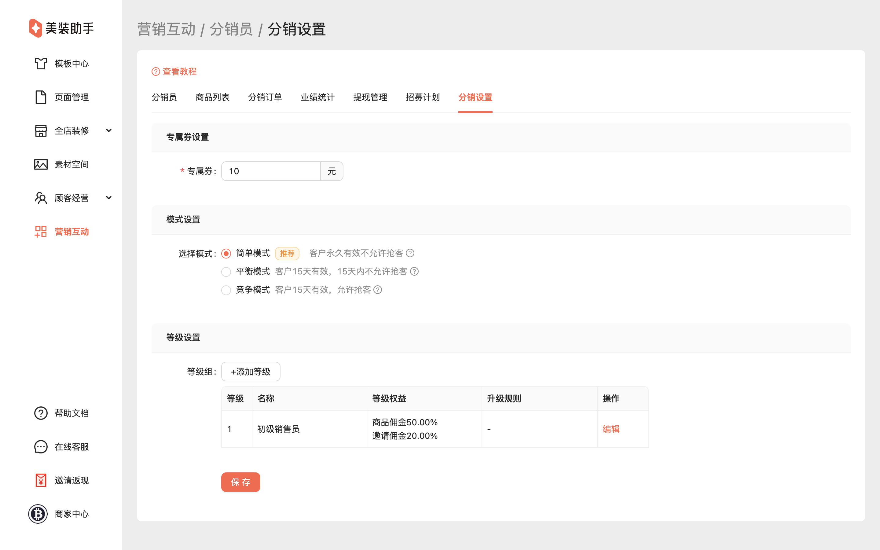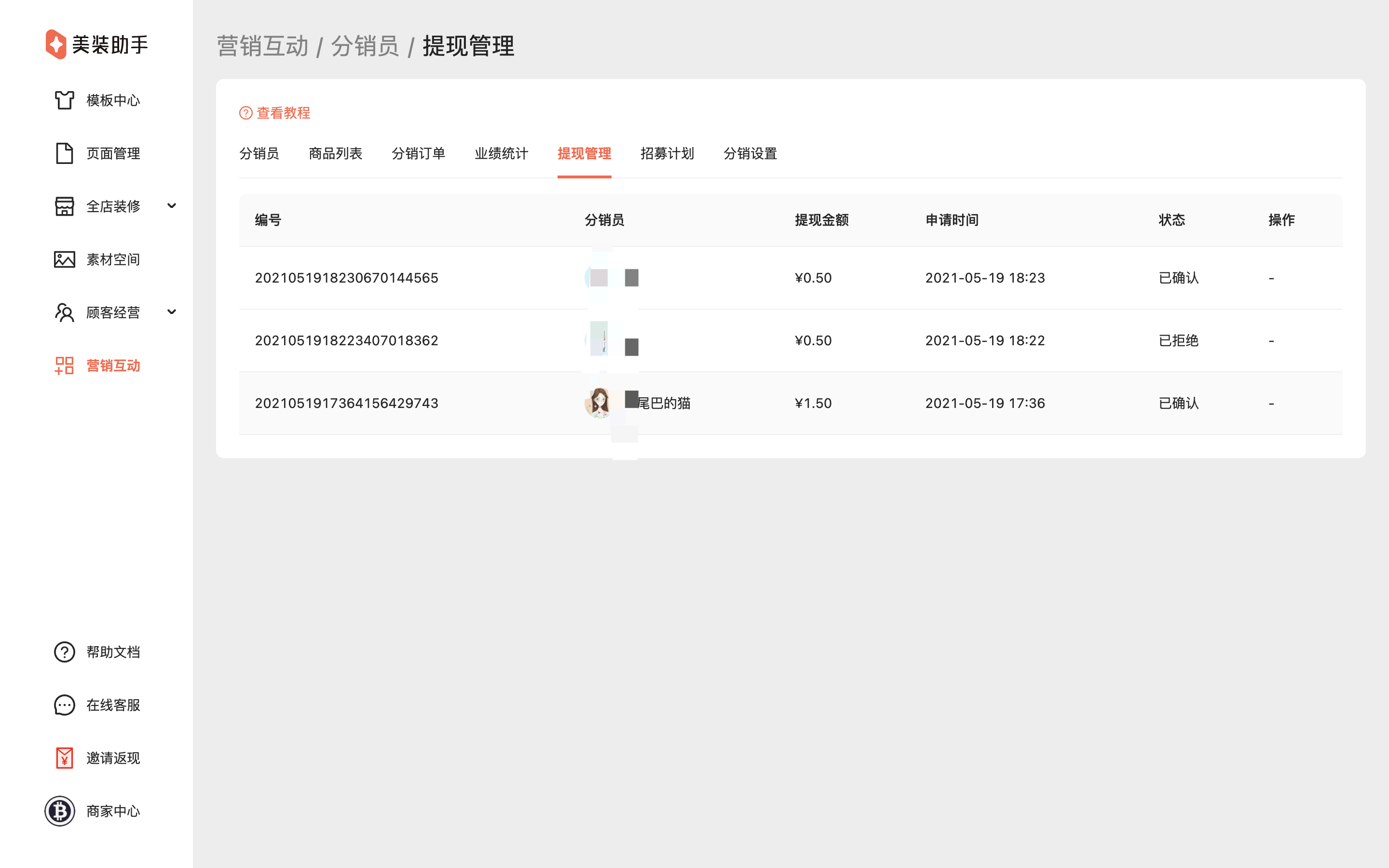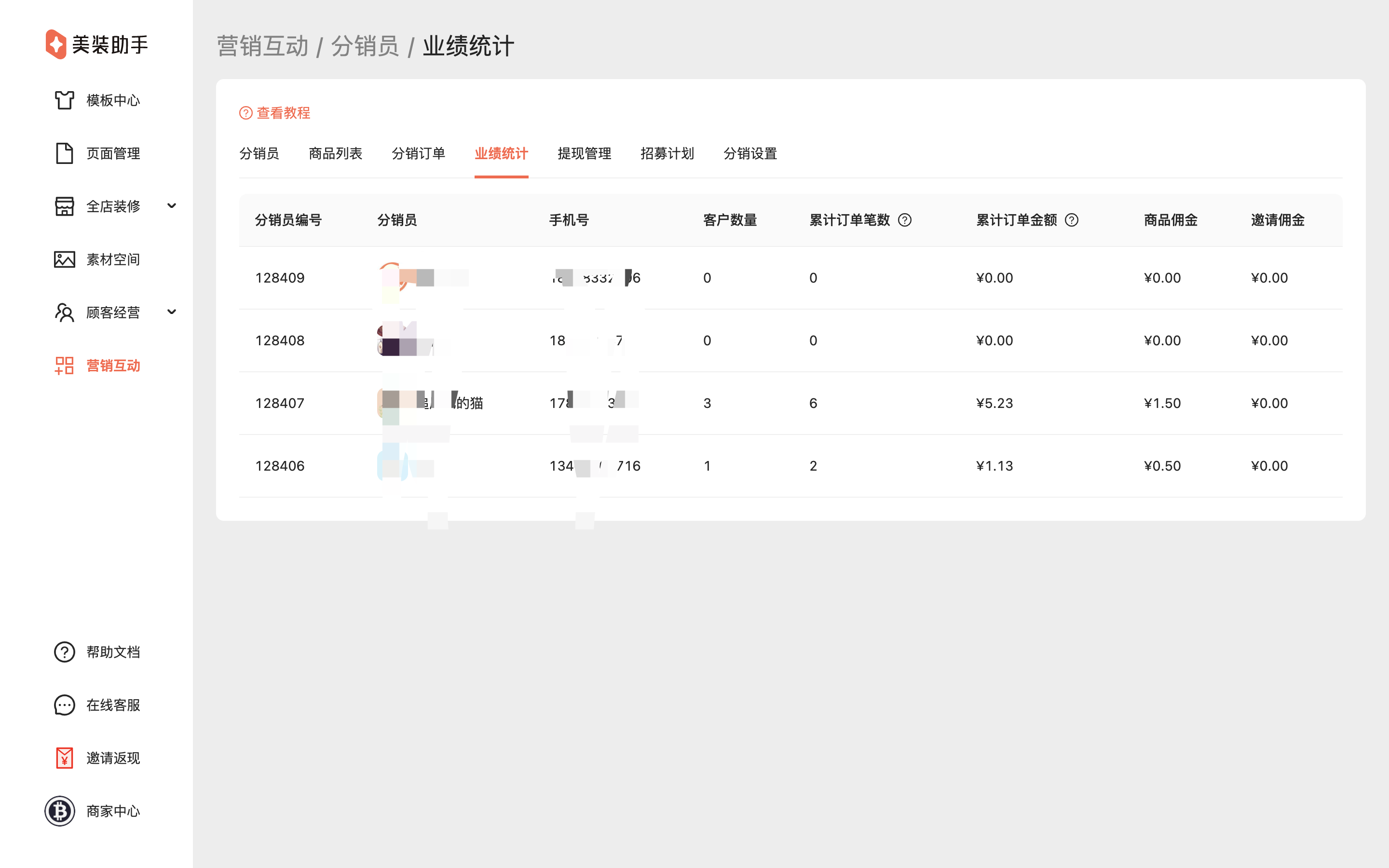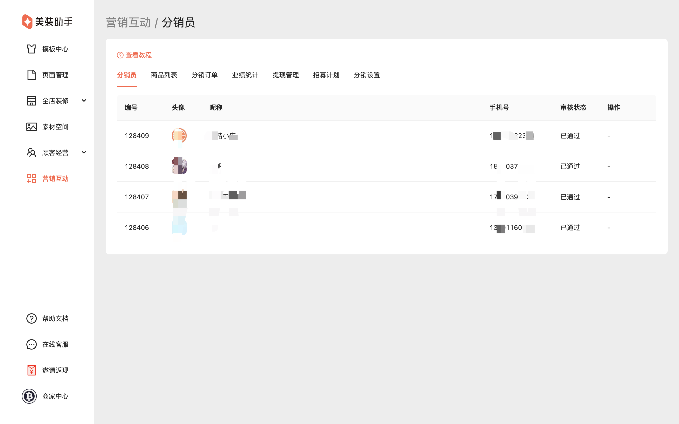美装助手后台>营销互动>分销员