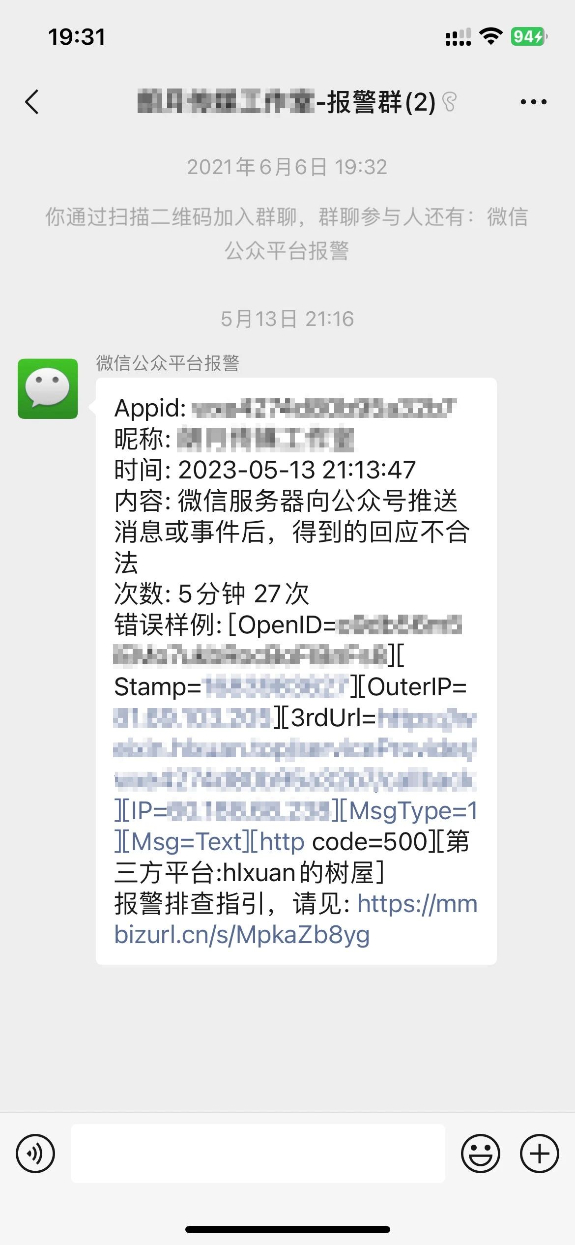 或者是 “公众号接口出现异常,请加入微信群接收接口报警” 的提问,