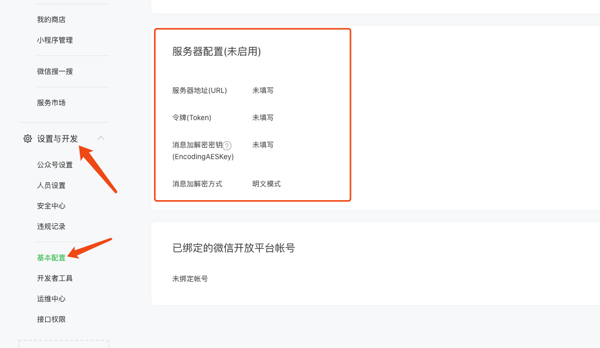 这里分了两种情况,一种是绑定了第三方平台,另一种是对接服务器配置。