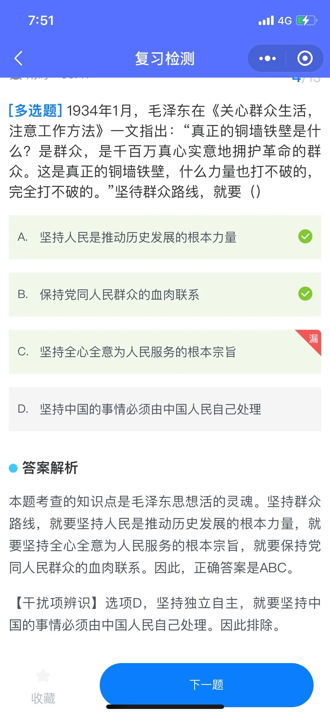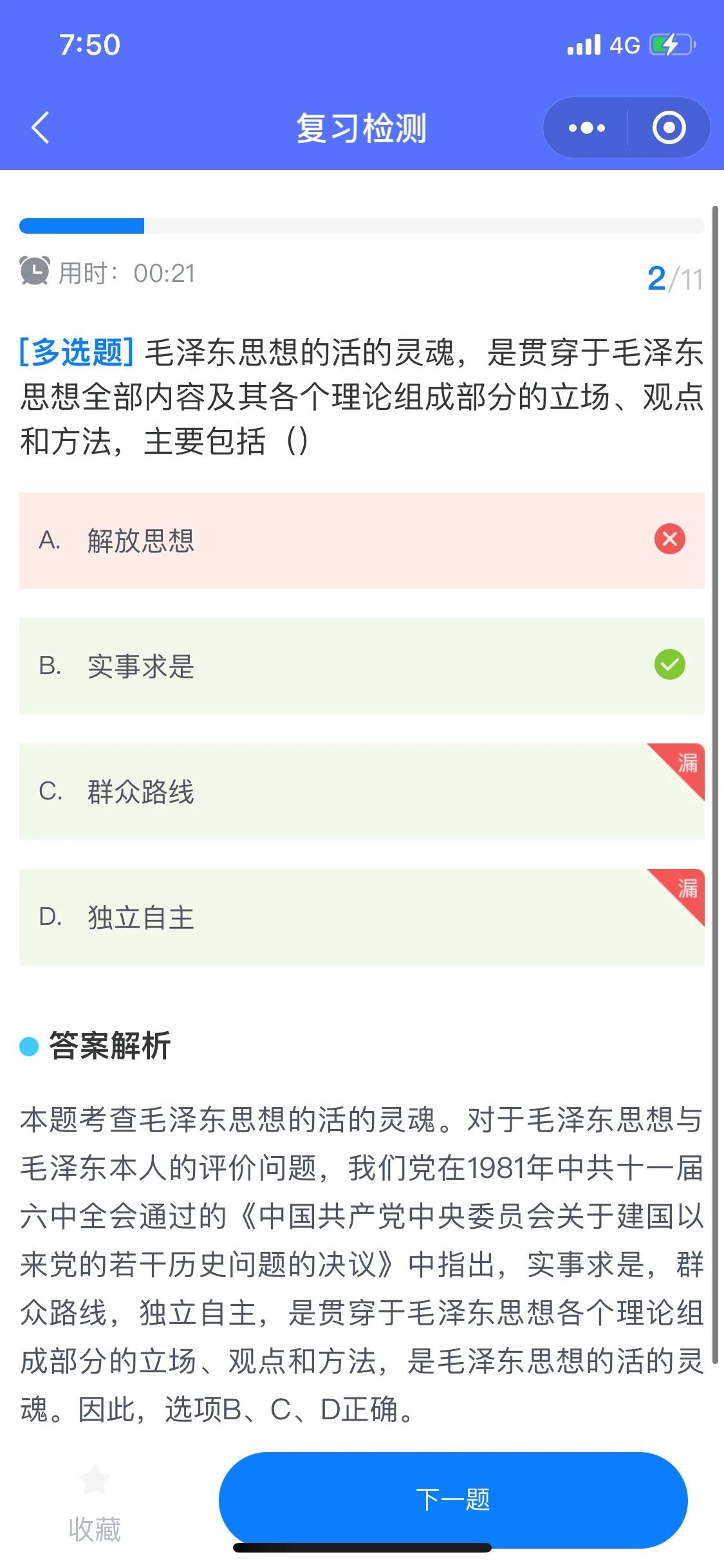 就是对于多选题里面的漏选项,一定要标记出是漏选,这样对于用户而言,能起到很明显的提示作用。