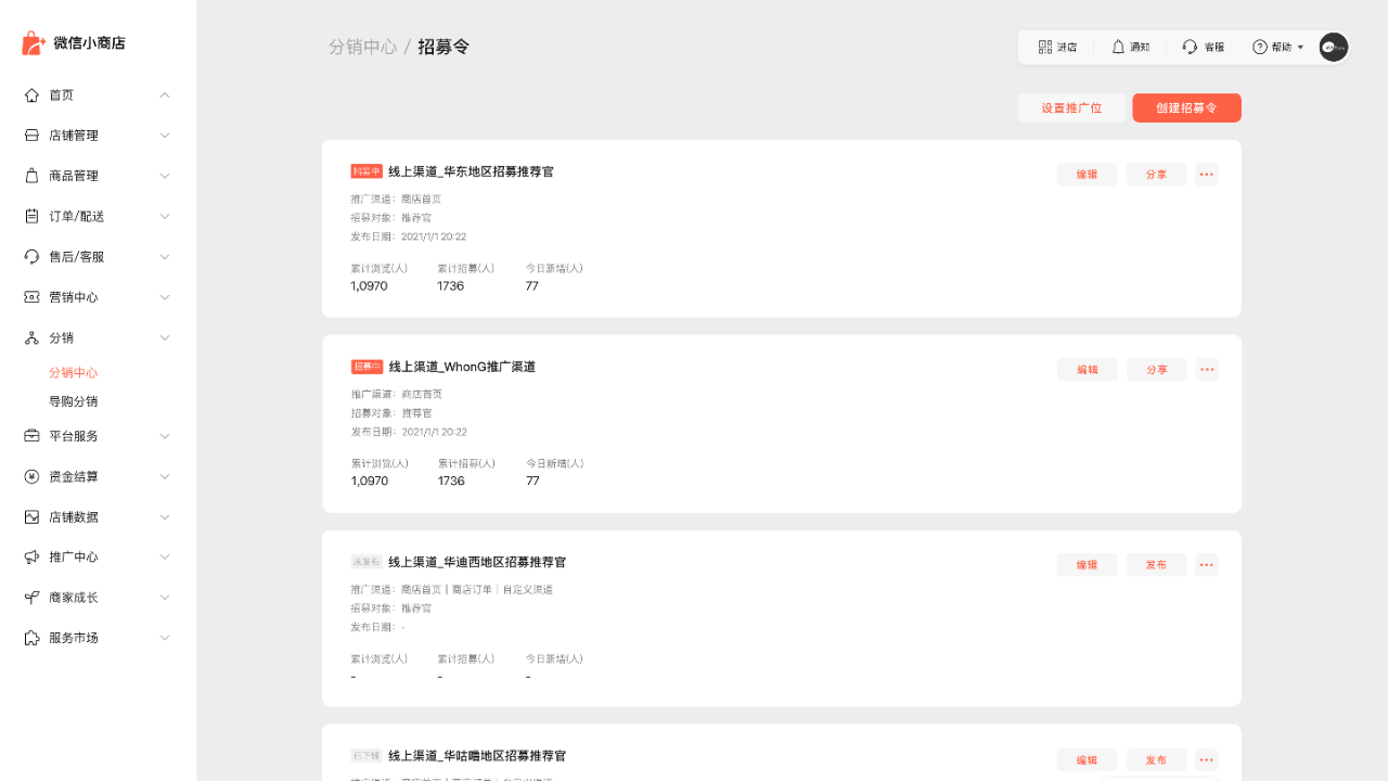 - 可将招募令显示在自己的小商店中,定向招募客户