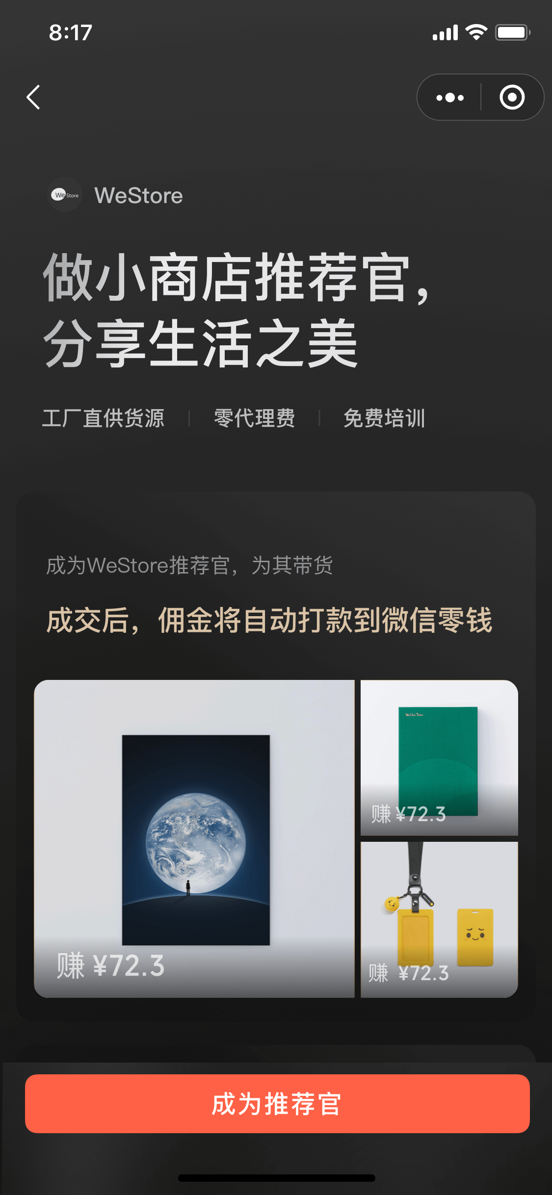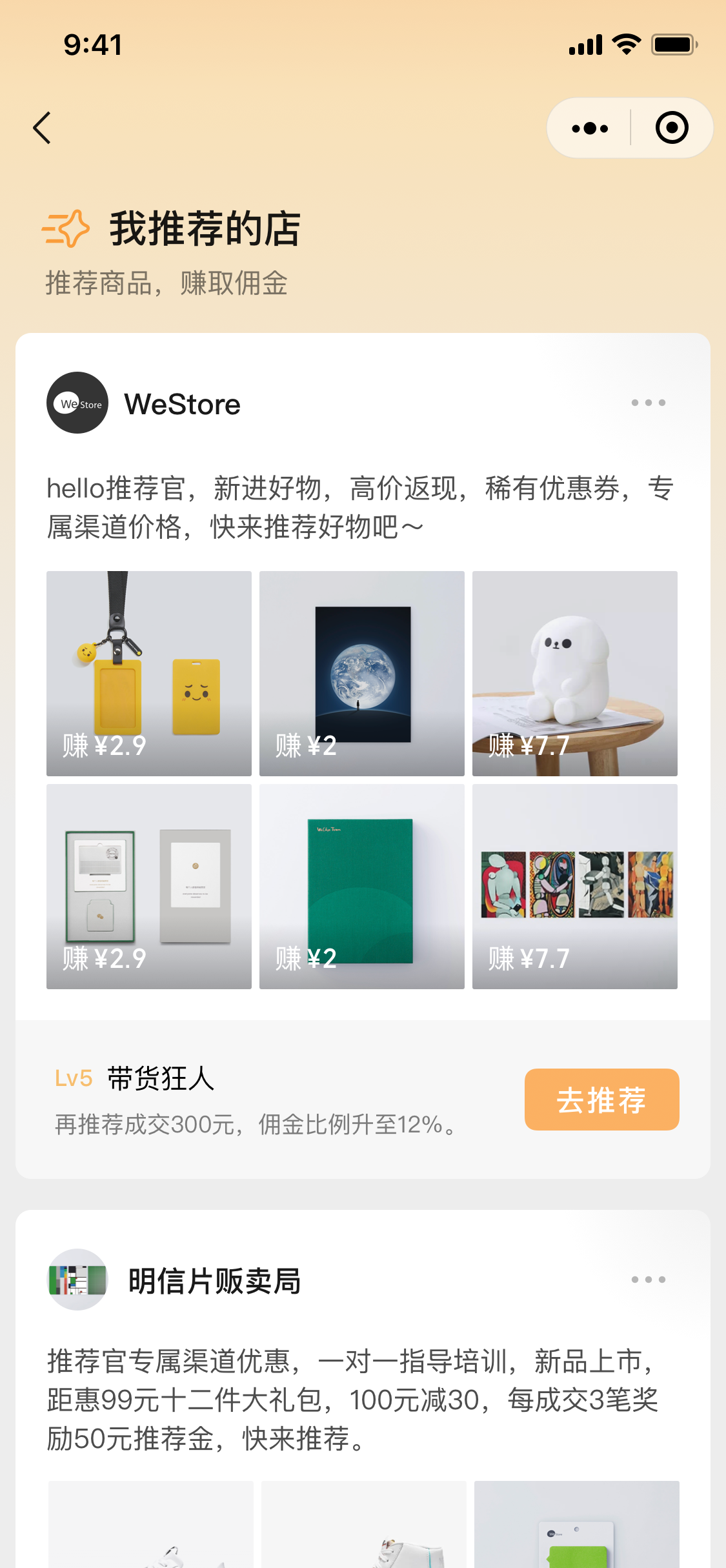 - 每个招募来的推荐官将会拥有一个小商店,支持关联视频号