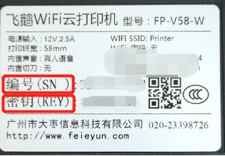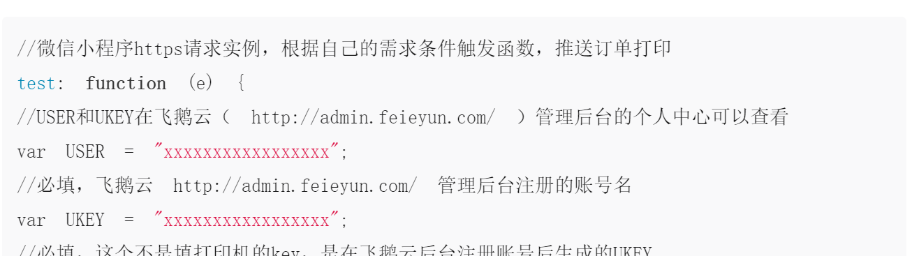 //必填,这个不是填打印机的key,是在飞鹅云后台注册账号后生成的UKEY