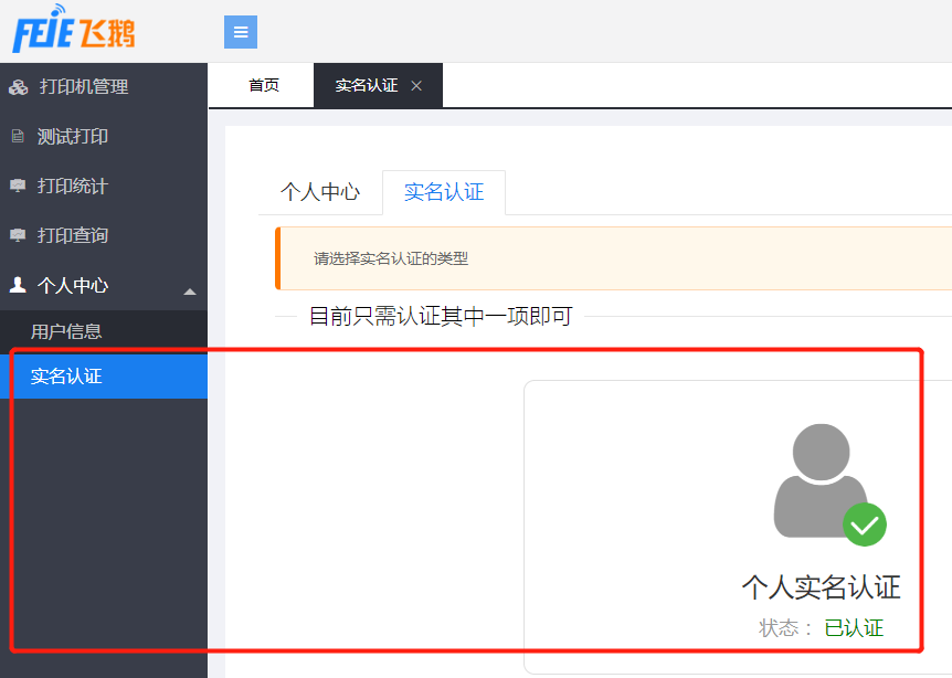 打开个人中心,进行个人实名认证(不需要企业认证)