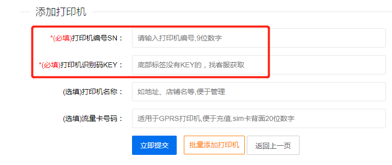1.打开网址:http://admin.feieyun.com/,注册,然后添加打印机
