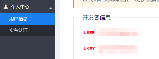 //USER和UKEY在飞鹅云( http://admin.feieyun.com/ )管理后台的个人中心可以查看