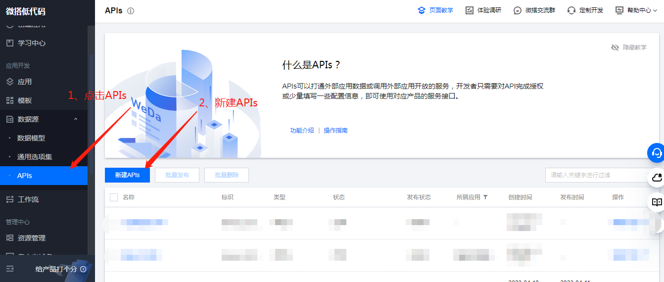 1、新建APIs