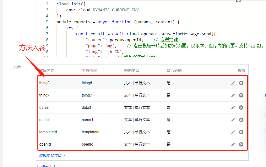 "thing7": "测试订阅消息", // 预约备注 这是使用的为虚拟数据用于演示,在实际项目中可根据实际情况进行填写入参