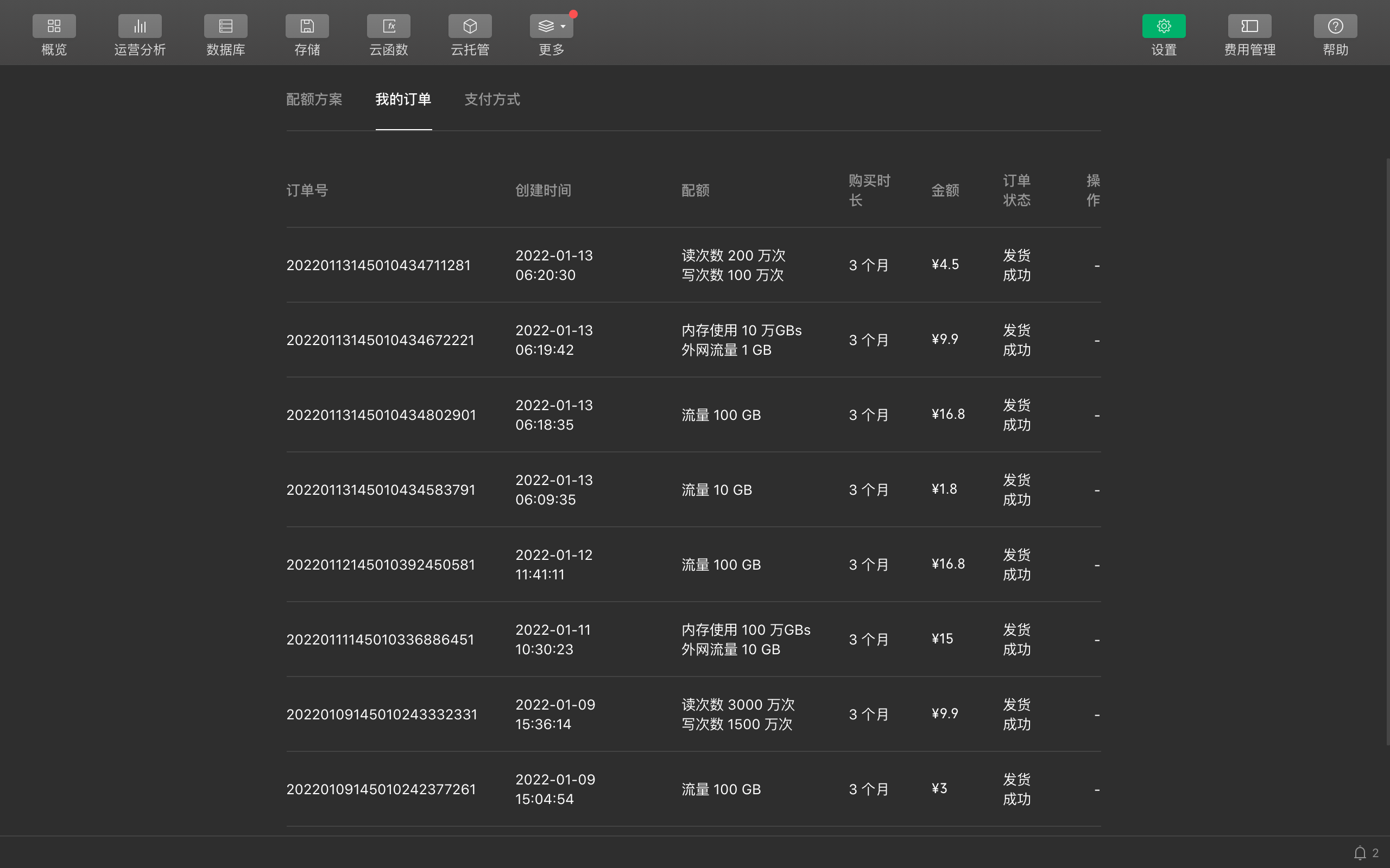 其实后面几天扣费一直为0,买的几个套餐都没有消耗,看上去虽然数据库读操作,单日最高突破了150W,但是其实读操作是最便宜的,最贵的还是CDN的流量