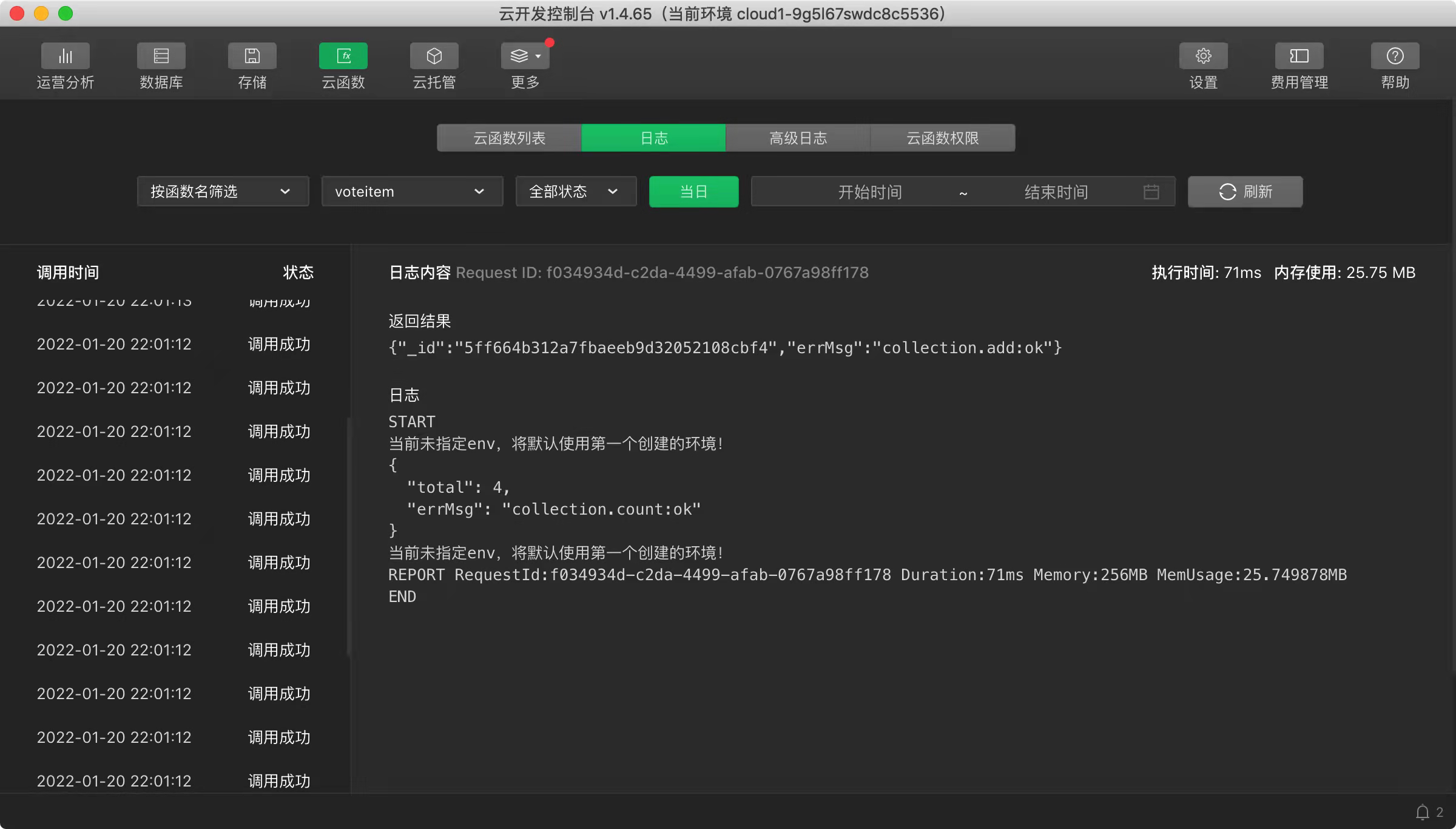 看看这并发,同一秒内的云函数请求