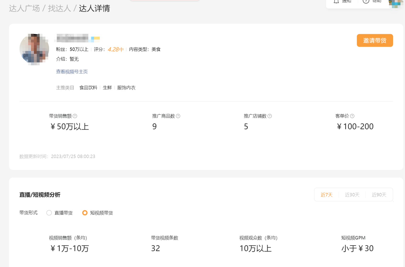 现在这个功能终于出来了,达人广场,但是目前仅限于招商团长可以看到达人信息,目前达人邀请有两种,一种查看联系方式,一种是邀请。