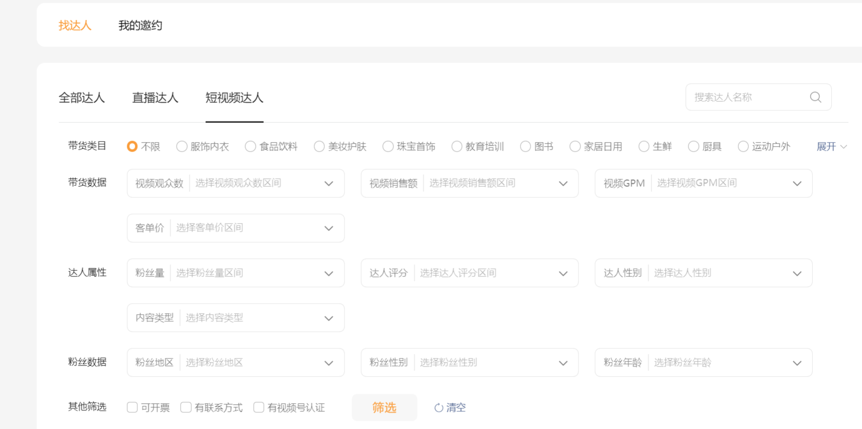 可以查到达人的销量/用户人群/带货产品