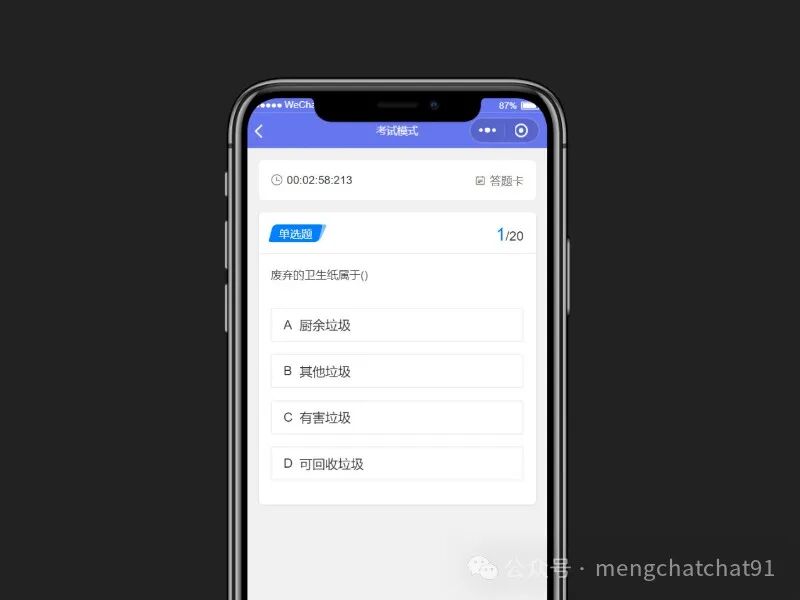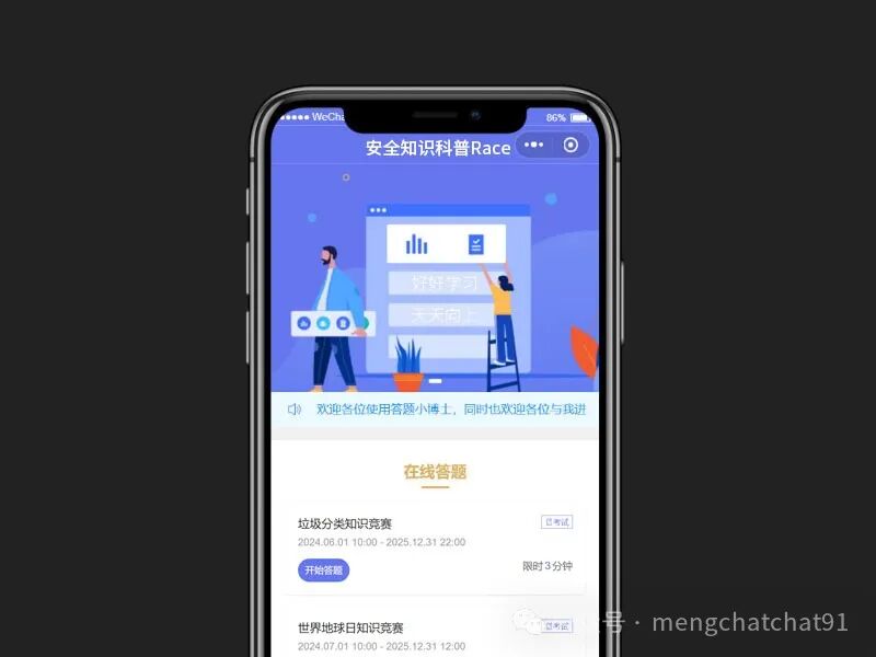 首先,使用并体验将要仿制的答题小程序,了解其界面设计和用户交互流程。