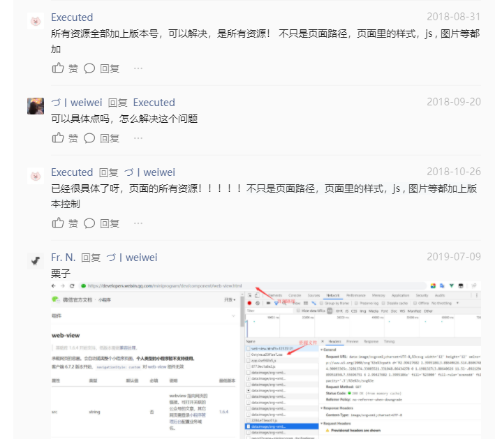 - 给 web-view src 对应的 url 换成动态的(加个随机参数),时间戳作为这个参数,页面也不会频繁去改动,所以取前几位就行了