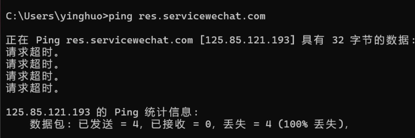 运营商 dns 解析等原因。导致 ping 不通 res.servicewechat.com 这个域名