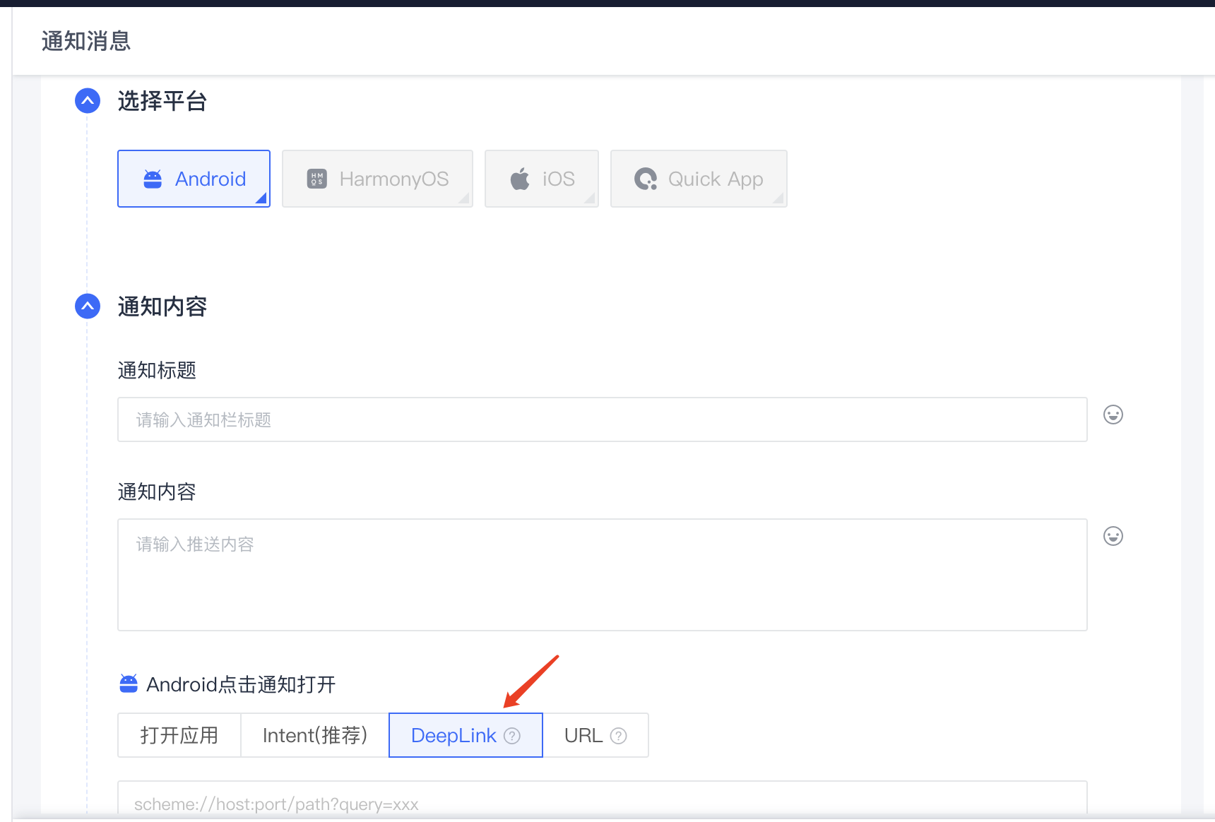- 极光控制台发送消息时,配置 Android点击通知打开选择