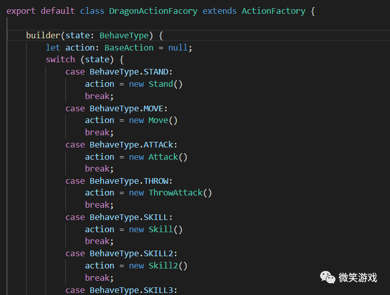 - 首先还是要定义好行为枚举,通过状态机,不同的行为实现不同的逻辑。