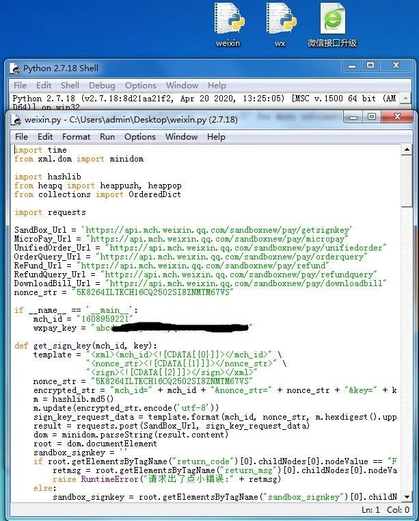 - 以下是升级脚本代码,替换自己的商户号和密钥运行即可