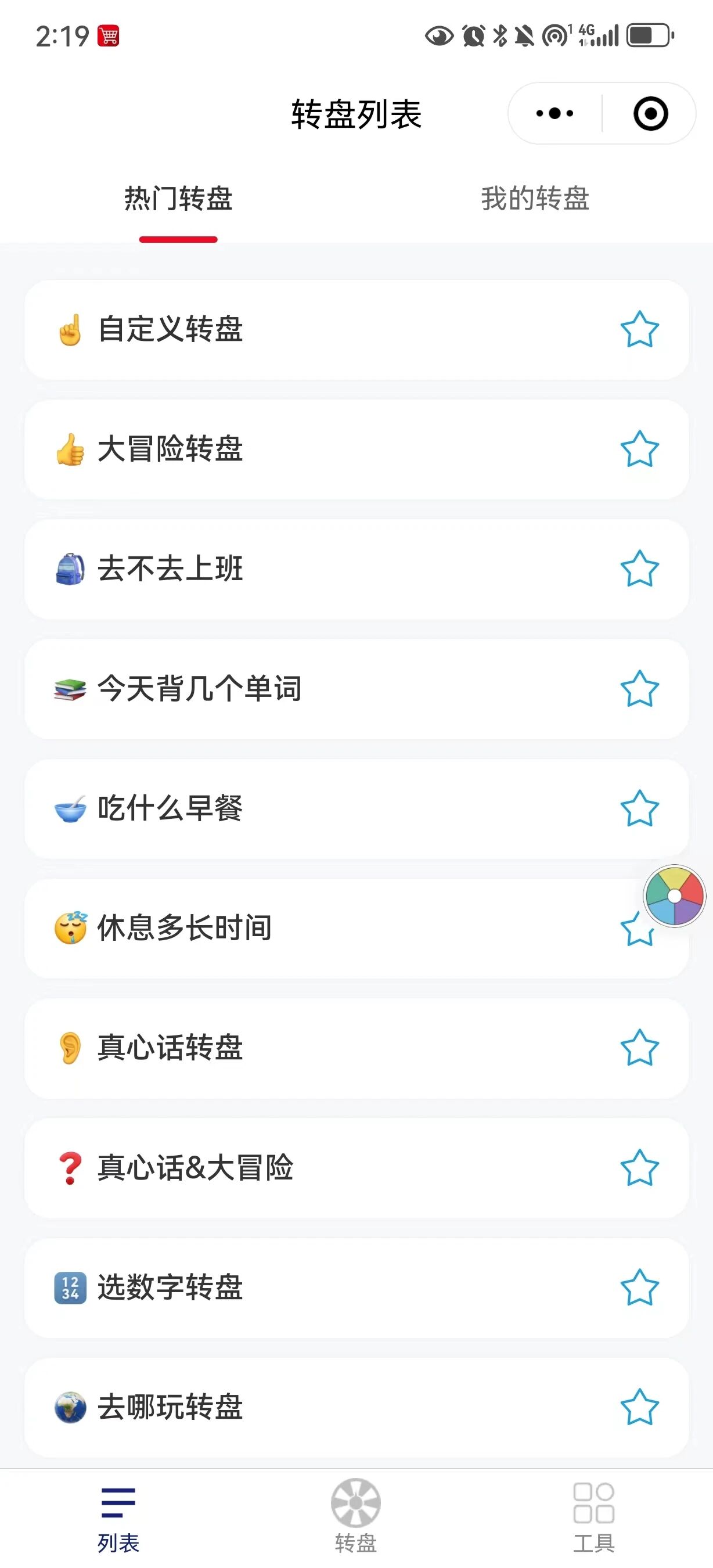 2)万能小转盘,这个小程序的是我目前体验下来,完成度和用户体验都可以排第一