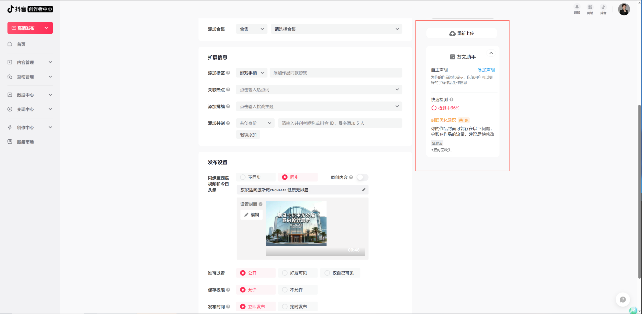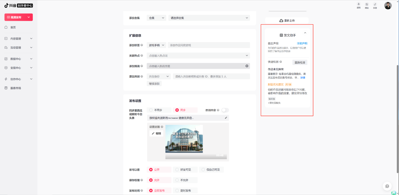 抖音在发布的时候有个发文助手预先快速审核 发布成功后还有一个审核 这样能保证视频发布后有问题及时修改