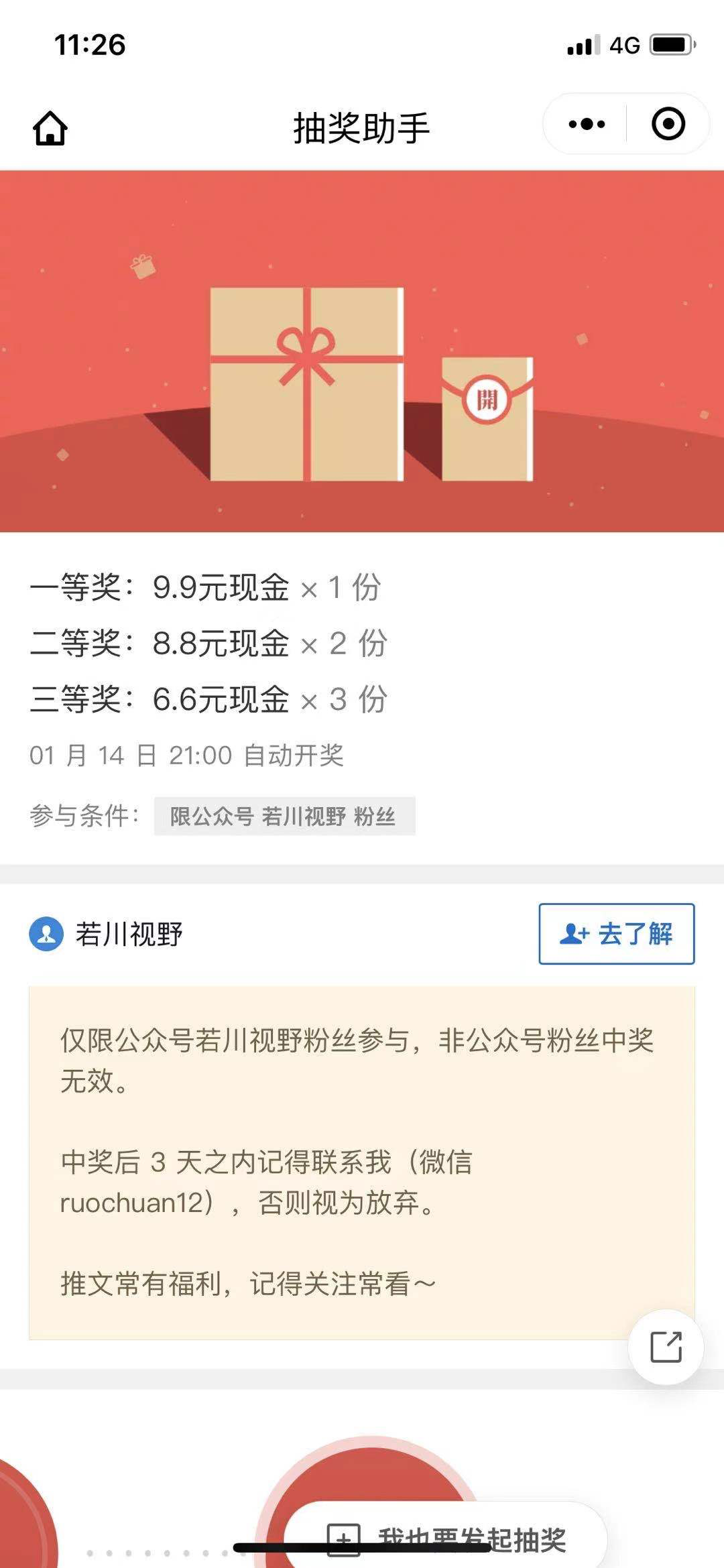 5)公众号粉丝定向抽奖,关注公众号才可以参与「2021-01-13」