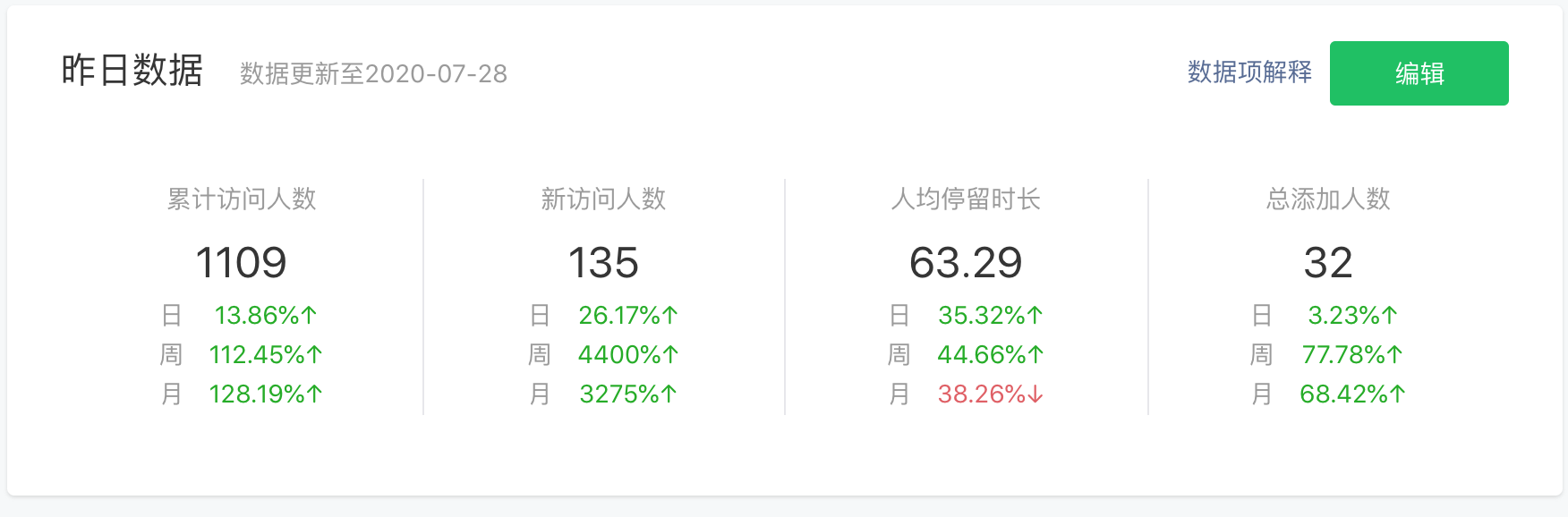 看着数据是不是很带劲,对于日活上万的运营人员来说可能不算什么,但是对于一个即将放弃、没有流量的小程序来说,看着它日活从0-100的成就感还是很强的,可以毫不夸张的说,开通搜一搜服务让我的流量至少翻了10倍。
