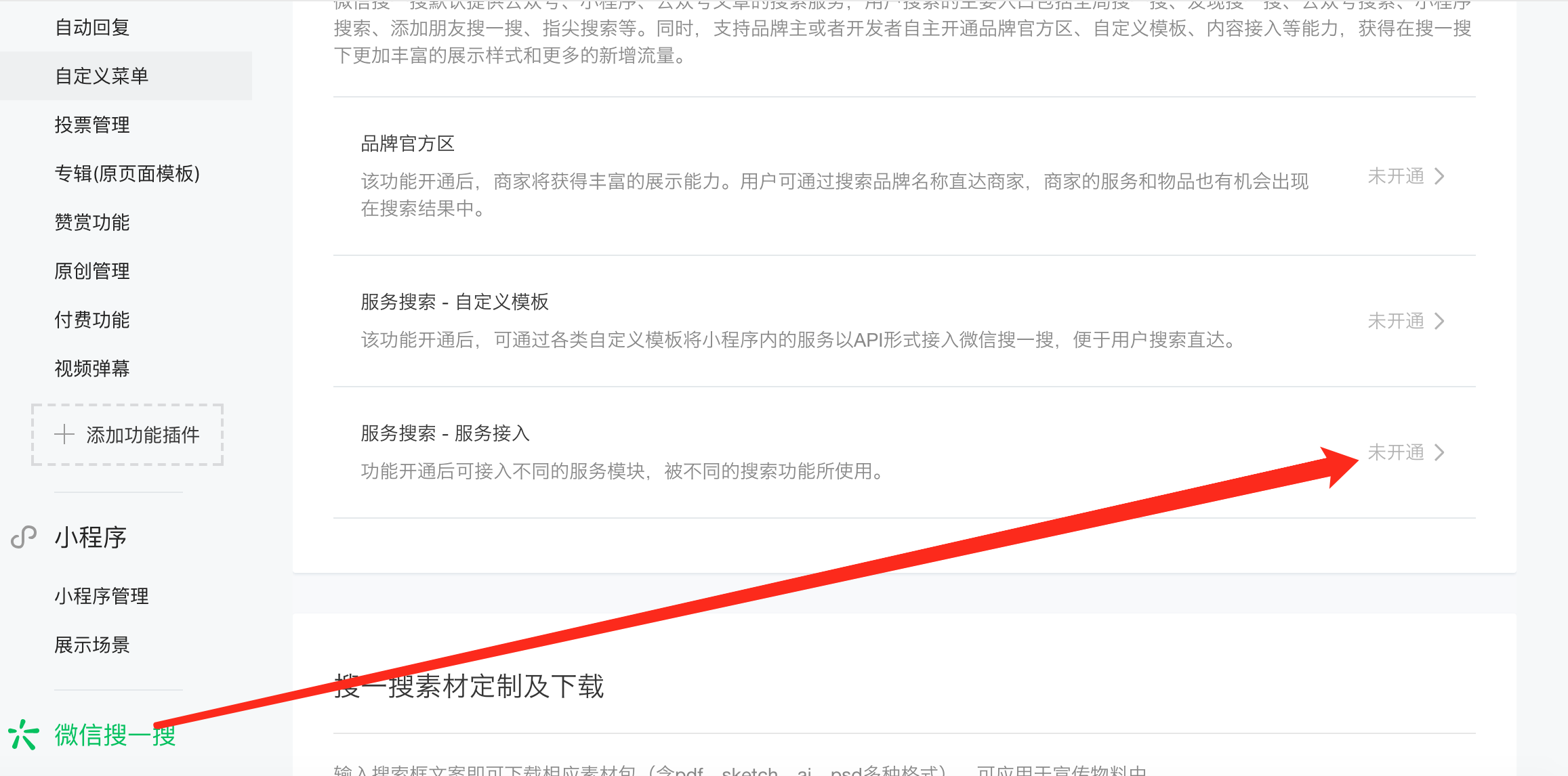 3-2、公众号-微信搜一搜,开通服务搜索接入(下图)