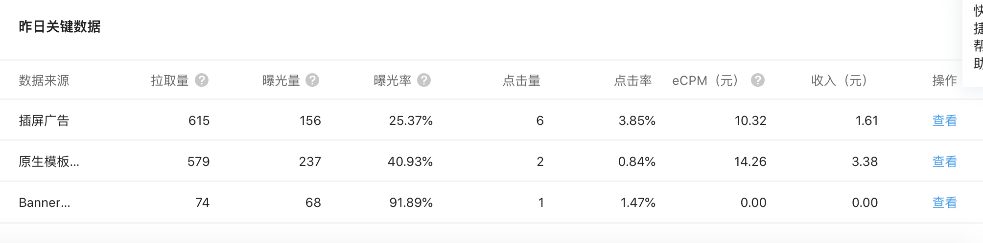 20207月30日记录:29号下午开通了流量主,今天查看收益为4.99元,大部分用的是原生模板广告,无激励,用户数依旧呈现上升趋势。
