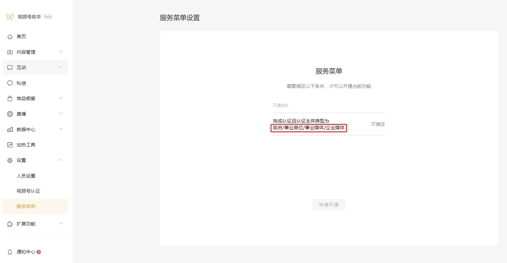 之前,任何企业都可以开通微信视频号的【服务菜单】功能,但现在这一政策发生了变化。这可能是由于微信平台为了提高服务质量,对开通此功能的主体进行了更加严格的筛选。