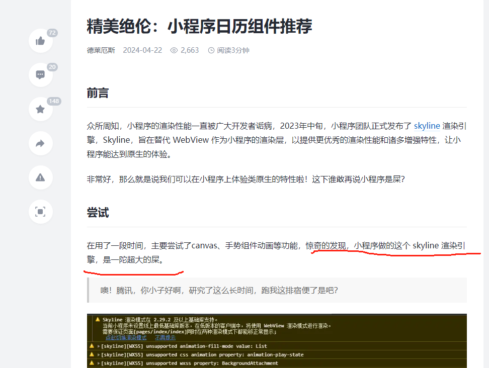 至此,Skyline 的主要特点已基本介绍完毕,更完整的介绍、用法、迁移指引、注意点等等请查阅 文档。建议开发者现在就使用起来,尽早享受到 Skyline 带来的优化和丰富的特性,如果开发中遇到问题,可在开发者社区发贴反馈,我们也会邀请加入沟通交流群。