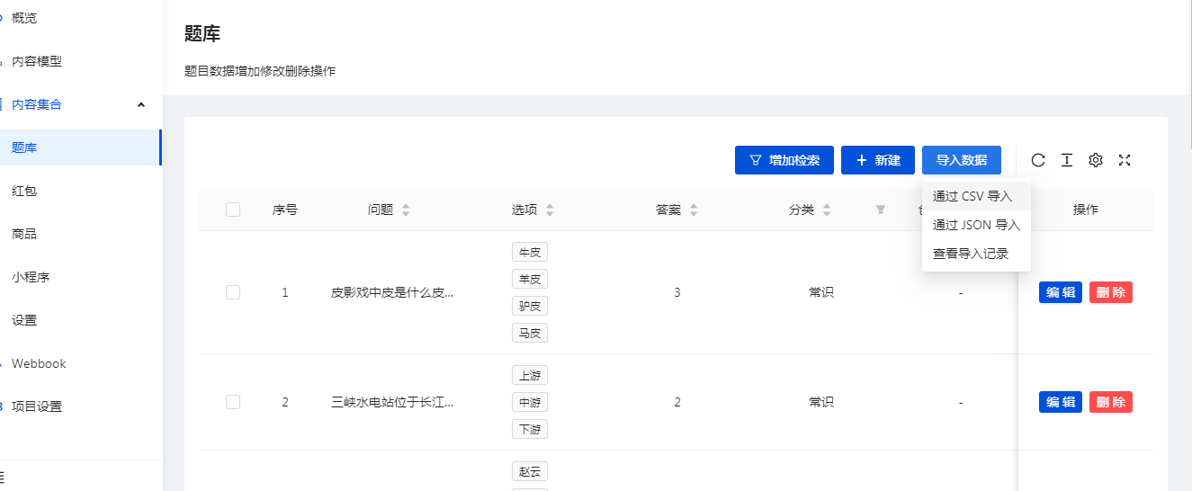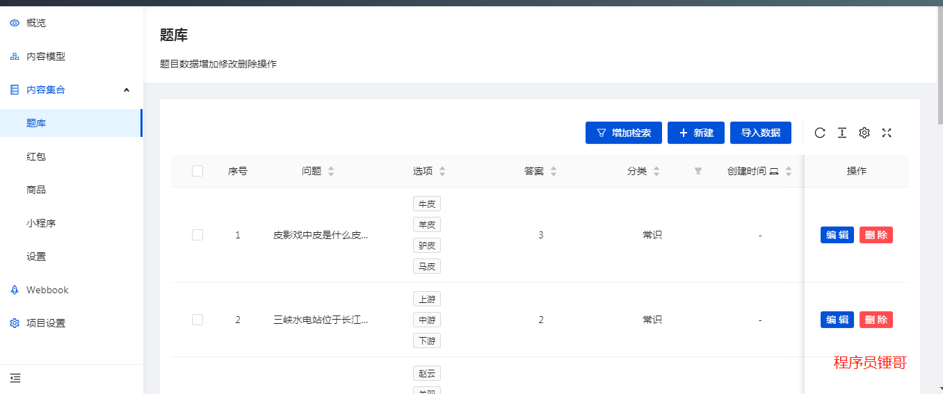 很多人问我闯关答题小程序怎么管理内容,今天我将后台发出来介绍下: