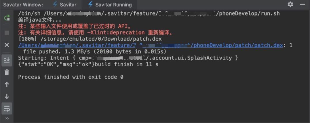 由此,就完成了 Savitar 中的编译部分,相比使用 Android Stuio 直接编译运行,Savitar 的编译量更小,速度更快。