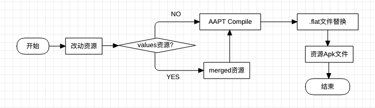 对于 values 资源,因为之前全量编译的产物是合并过的,所以不能使用单个模块的修改 .flat 替换合并过的 .flat,对于这种场景目前是会以 offline 模式重新执行一次处理资源的 Gradle Task。