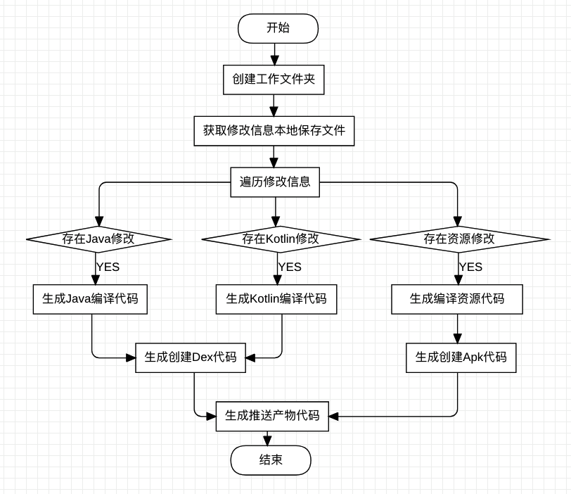 - 编译生成产物:进行代码、资源编译,生成 Dex 产物和 Apk 产物