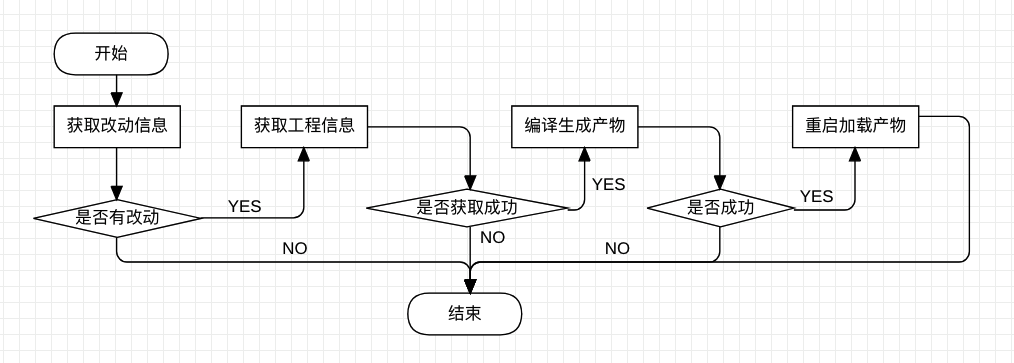 下面是整体运行的流程图,描述了从代码修改到完成修改产物加载运行的过程: