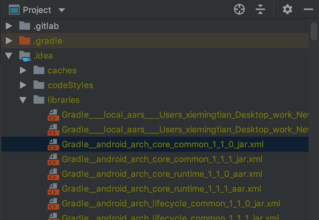 对于三方库依赖,可以在工程目录下 .idea/libraries 文件夹中获取到当前工程所有依赖的三方库信息。