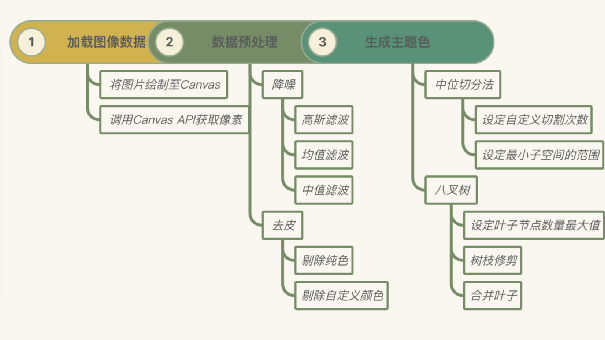 3.生成主题色:采用切割算法(中位切分/八叉树)进行颜色提取。