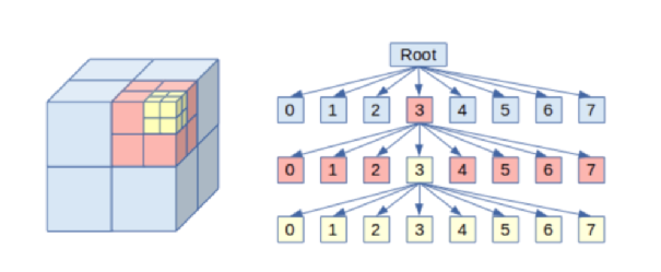 先用一句话简单概况,八叉树(Octree)是一种用于描述三维空间的树状数据结构,它是一种递归的树形数据结构,可以将三维空间划分为八个等分的小立方体(子节点),每个空间可以进一步细分为八个子空间,以此类推。